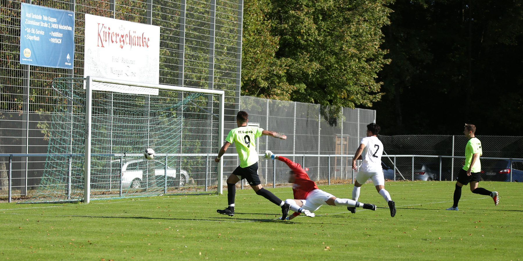Bei strahlendem Sonnenschein spielten Heimteam und Gäste heute von der ersten Minute an munter drauf los. Unser FC hatte durch Emanuel Karamanitakis die ersten beiden Torabschlüsse, die den langen Pfosten jeweils knapp verfehlten. Auf der anderen Seite war aber auch das Gästeteam durch deren schnelle Stürmer nicht ganz ungefährlich, wobei die beiden Hereingaben von der rechten Seite in der Mitte keinen Abnehmer fanden oder rechtzeitig entschärft werden konnten. Ein Musterzuspiel von Yannic Vettermann nutzte Semih Reinig in der 15. Minute zur FCG-Führung, dem Emanuel Karamanitakis nach abermaligem Abschluss von Semih Reinig aus spitzem Winkel den zweiten Treffer hinterherschob. Diesem blieb jedoch aufgrund vermeintlicher Abseitsstellung die Anerkennung verwehrt, wie auch vielen weiteren großartig mit Diagonalbällen eingeleiteten Angriffen, die ebenfalls wegen vermeintlichem Abseits zurückgepfiffen wurden. Auf der Gegenseite entschärfte Lukas Bernauer einen klasse geschossenen Freistoß mit einer ebensoguten Rettungstat. Danach wurde erneut Reinig bei einer Einzelaktion nach guter Vorlage von Emanuel Karamanitakis in den Strafraum geschickt und verwandelte aus spitzem Winkel zum 2:0 ins kurze Eck.