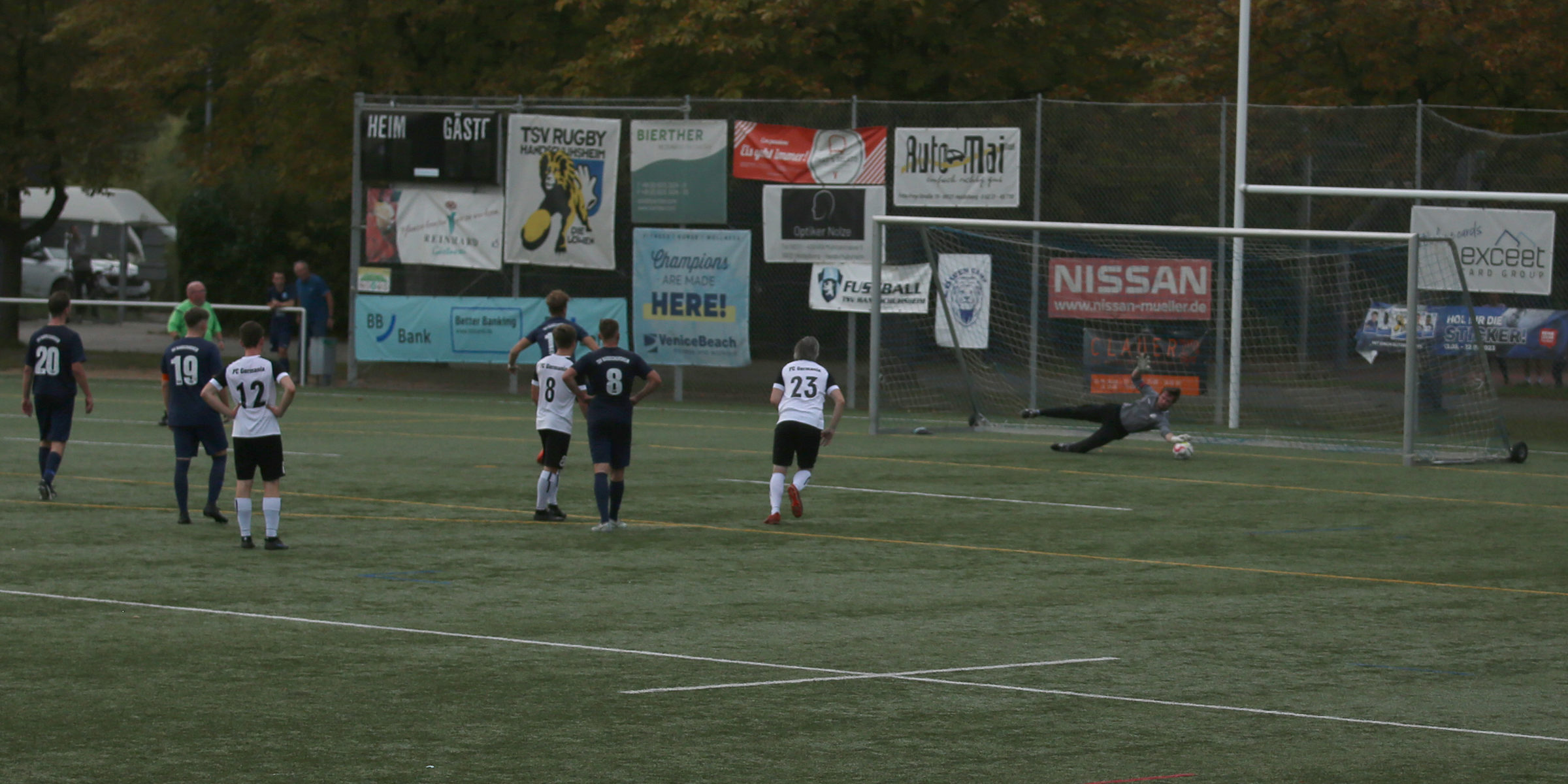 Doch was nach dem Seitenwechsel noch alles an „Bad News“ kam, hatte so gut wie niemand auf dem Schirm. Zunächst machte Handschuhsheim weiter Druck und beim FC Germania verletzte sich Spielertrainer Samuel Eisinger unmittelbar nach dessen Einwechslung, so dass Sascha Thomas angeschlagen weitere zehn Minuten absolvieren musste. Weitere Spieler kamen beim FC Germania nach und nach ins Spiel, die ihre Sache in der Folgezeit im Großen und Ganzen ordentlich machten. Handschuhsheim kam in der 73. Minute dennoch zum zur diesen Zeit verdienten Ausgleichstreffer nach einem Freistoß, nachdem zuvor bereits ein Distanzschuss an den rechten Außenpfosten klatschte.